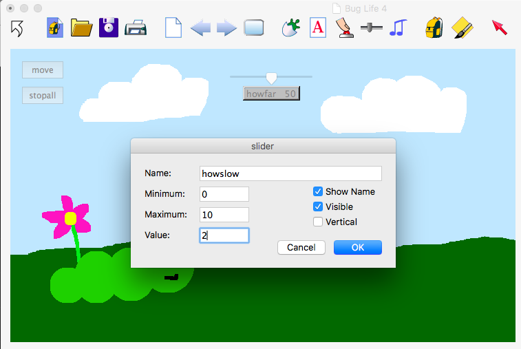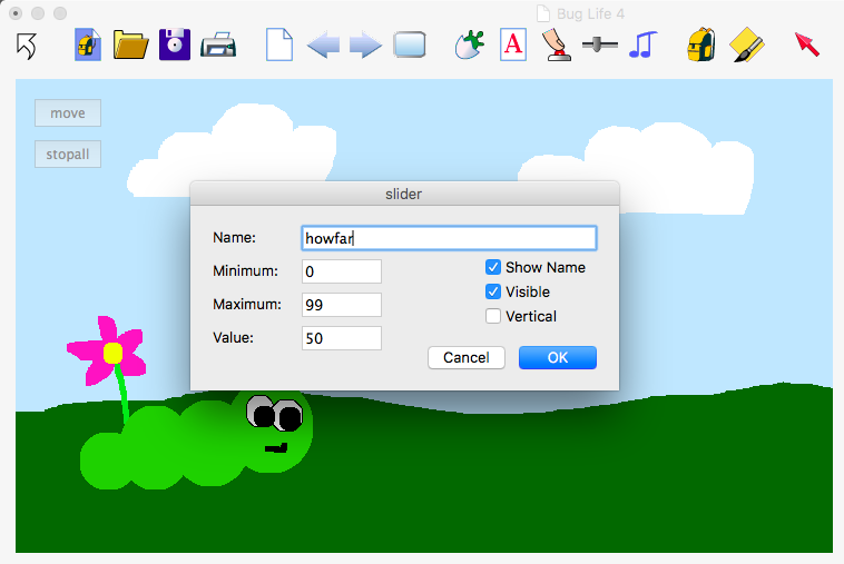 - Can you change the slider's name and change the procedure so that your bug still moves?