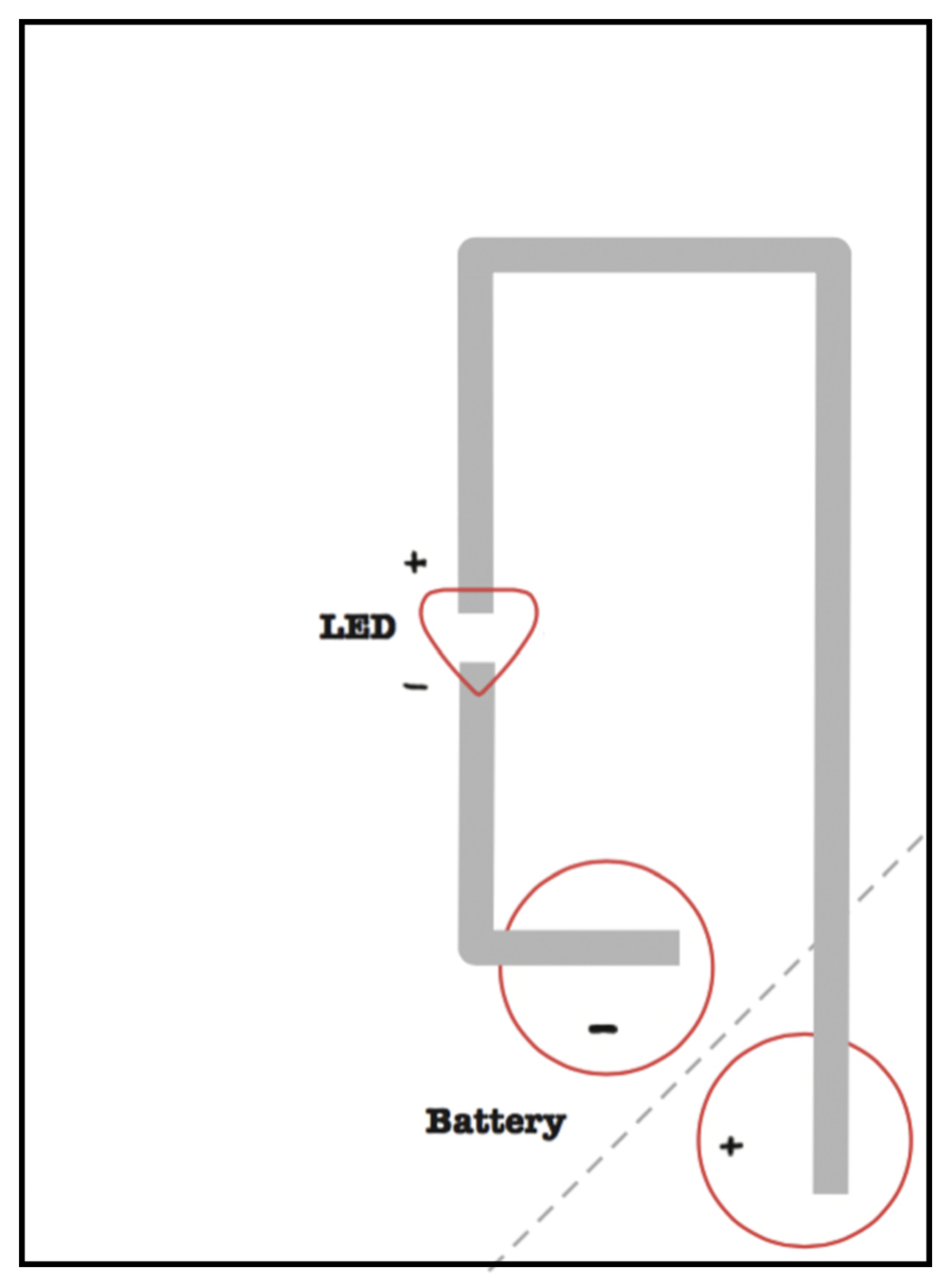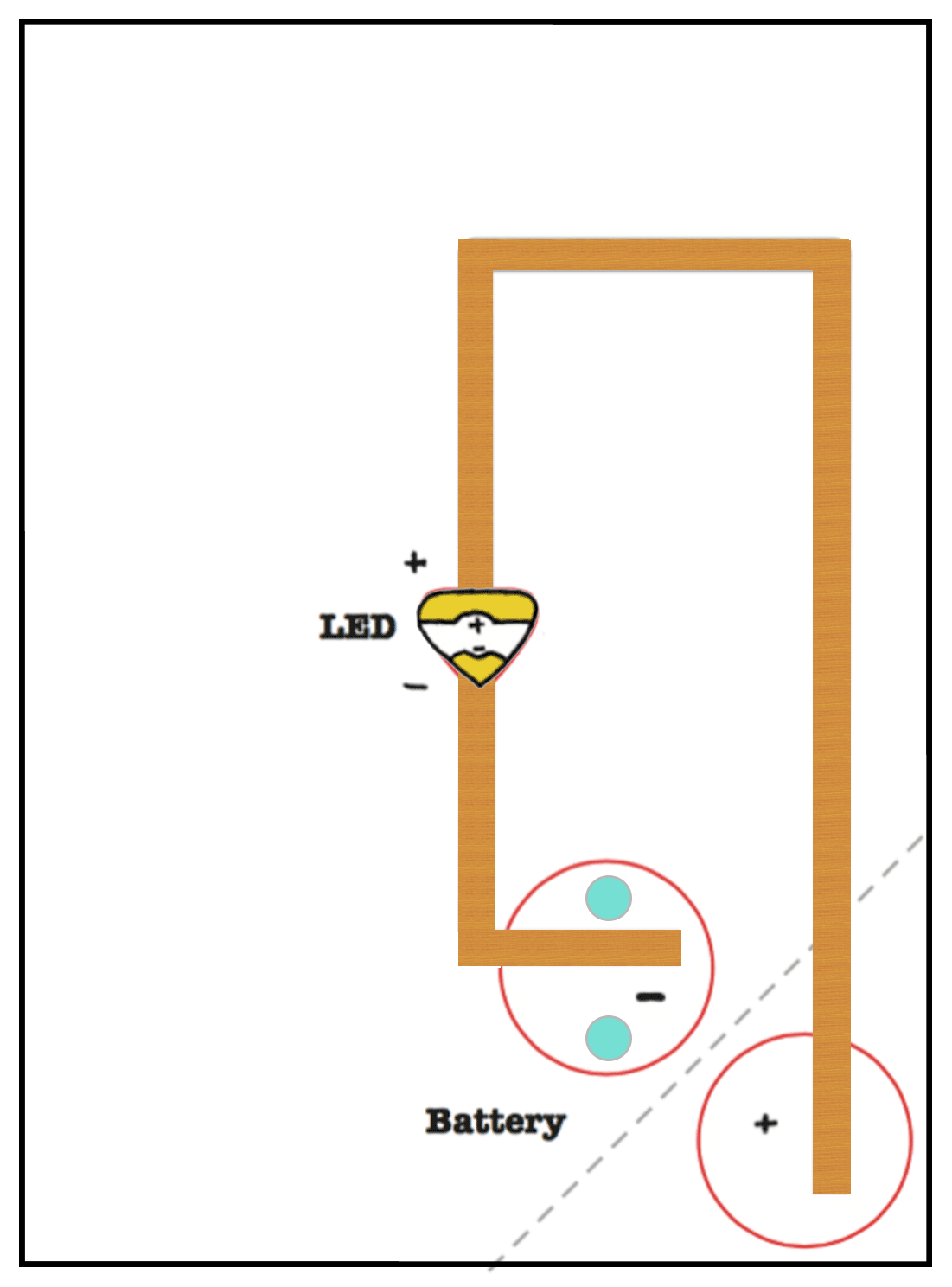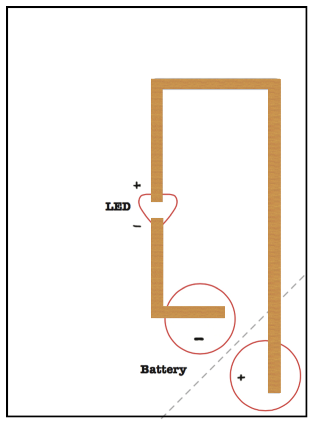 Fold the corner, and then trace the other side of the batteryStep 4.Draw a circuit that connects both sides of the battery to both sides of the LED