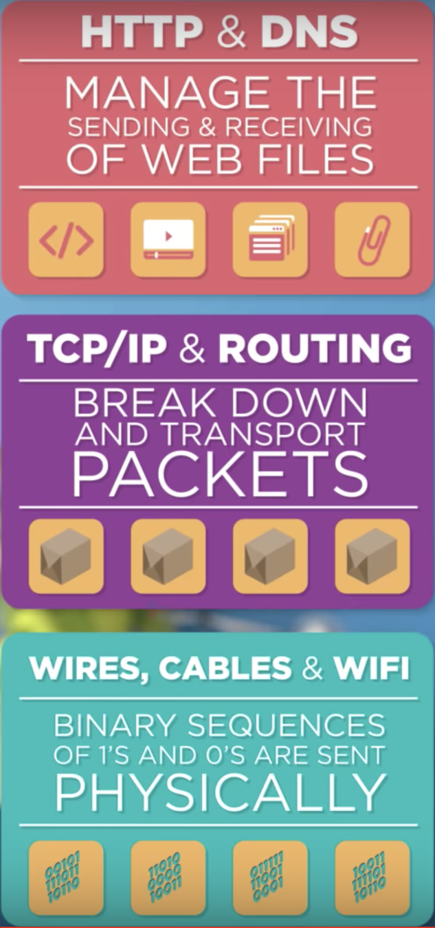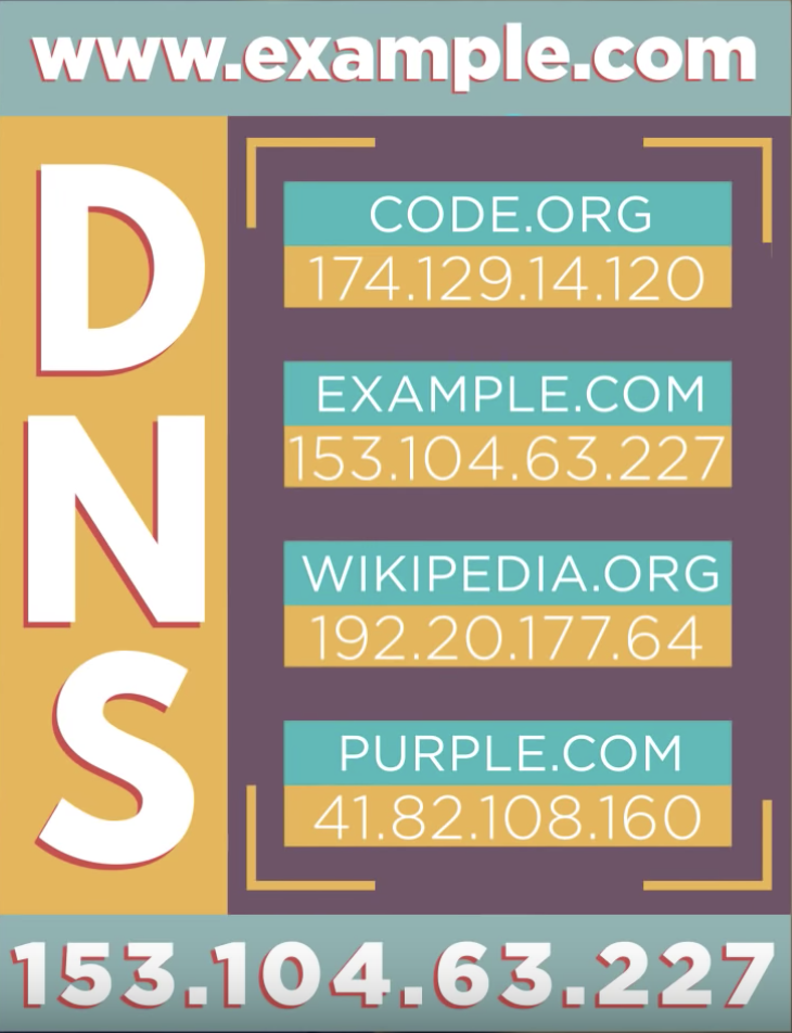 DNS - short for Domain Name System, this system translates domain names (like example.com) to IP addresses (like 93.184.216.34)