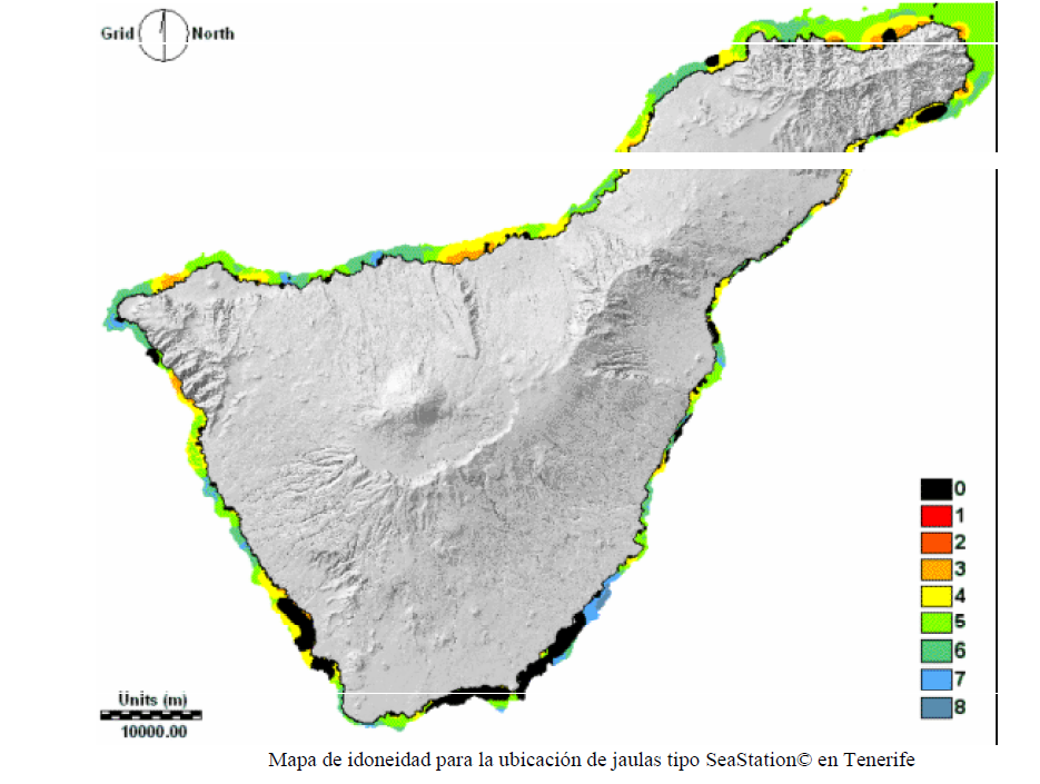Selección de las areas más óptimas para el cultivo de peces en jaulas flotantes en la isla de Tenerife (Perez et al 2002)