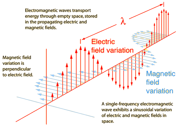 The result are oscillating electric and magnetic fields that regenerate each other while traveling on space