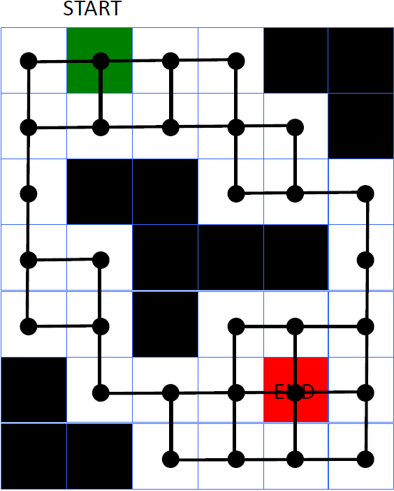 - Conecte el nuevo punto a todos los puntos en el mapa mediante líneas, siempre y cuando éstas no intersequen obstáculos.