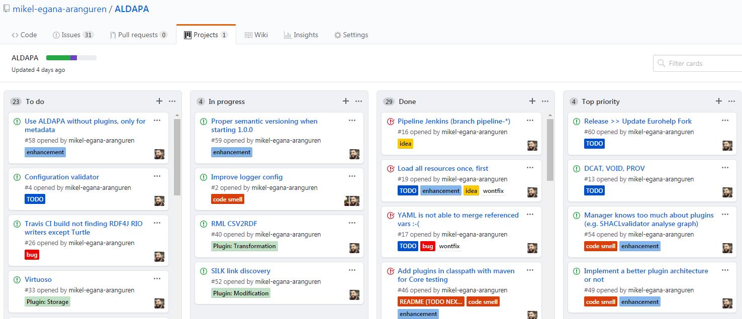 Uso de Tags, Releases, Issues, Milestones, y Kanban para la gestión del proyecto mediante Scrum en GitHub