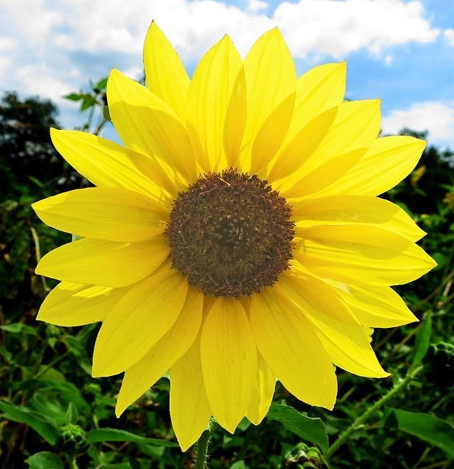 Helianthus annuus, is a large annual forb of the genus Helianthus grown as a crop for its edible oil and edible fruits. This species is also used as bird food, as livestock forage (as a meal or a silage plant), and in some industrial applications.