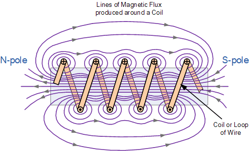 - When current flows through a coil of wire (called solenoid) around a magnetically soft core, then the core gets magnetised