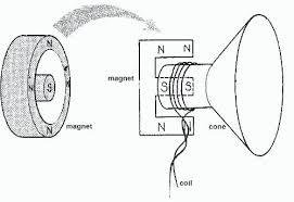 - Paper cone attached to coil of wire through which current flows