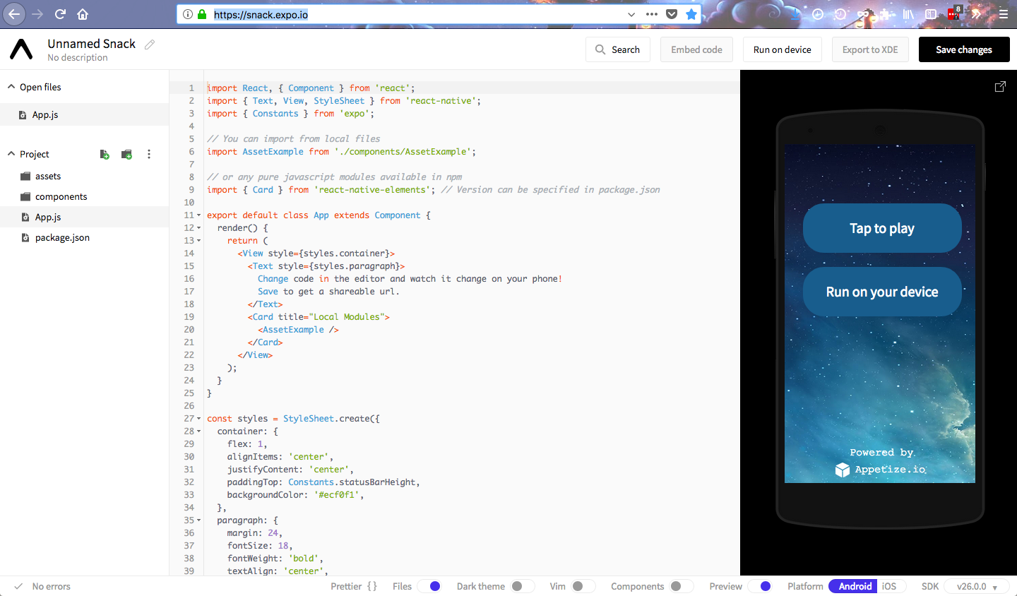 下載 Expo, 可以在手機上同步看到你開發的軟體