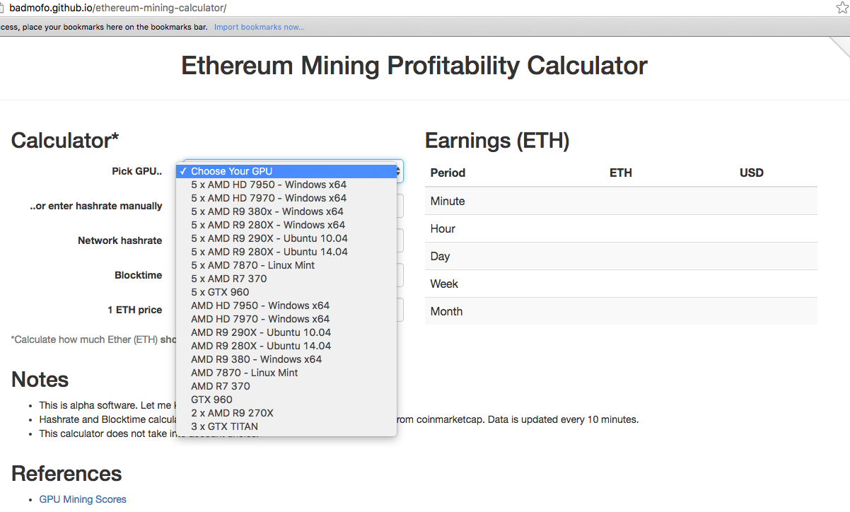 2. 挑一張GPU顯卡 http://badmofo.github.io/ethereum-mining-calculator/