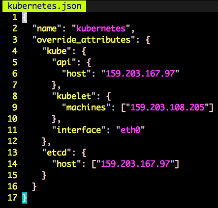 $ knife bootstrap 159.203.173.161 -E kubernetes -r 'role[kubernetes-etcd],role[kubernetes-master]' -i /Users/mingderwang/.docker/machine/machines/centos-1/id_rsa