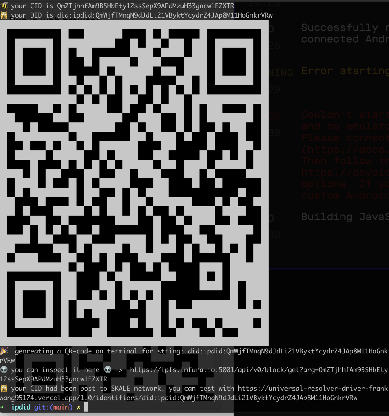 Which you can use IPDID CLI to issue claims or create DIDs with QR codes.