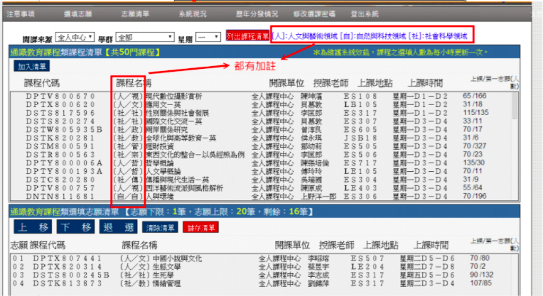 5. 除了歷史與文化外,其餘課程志願分發以高年級為優先,至於每個人的志願清單則是以第一志願為優先