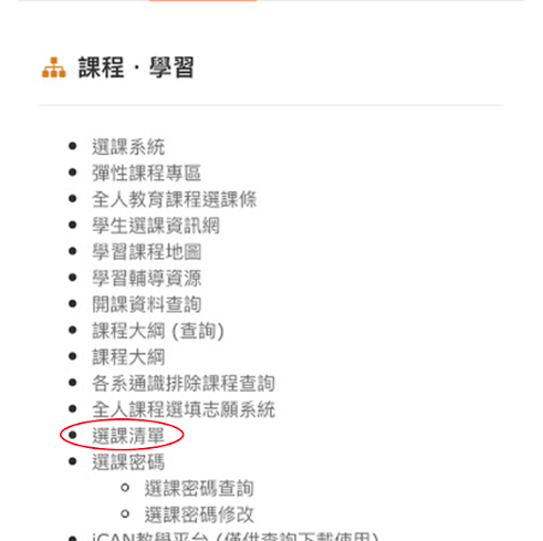 6. 由於高級英文會分為兩班(A、B,同一門課但不同時段),因此要記得去「選課清單」查詢分班情形,確認星期五的空堂時間