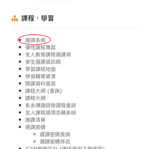 - 選課步驟:進入輔大官網→在校學生→登入後點選校內系統選單→點選選課系統