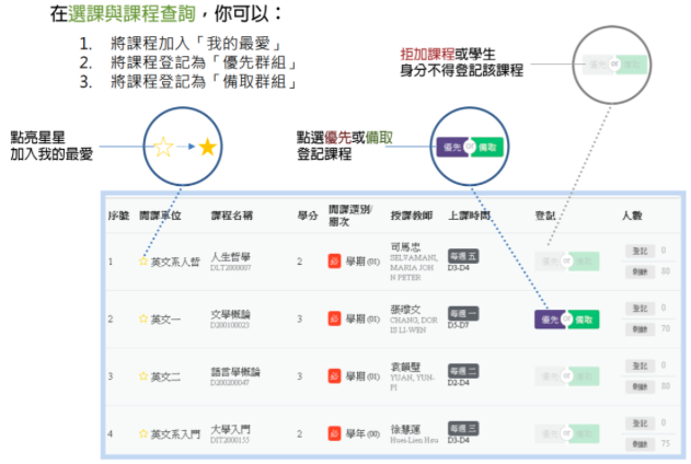 - 時間: 08/29 09:00am- 09/02 03:00am(第一次選課) 09/03 12:00pm- 09/05 03:00am(第二次選課) (備註:為24小時制)