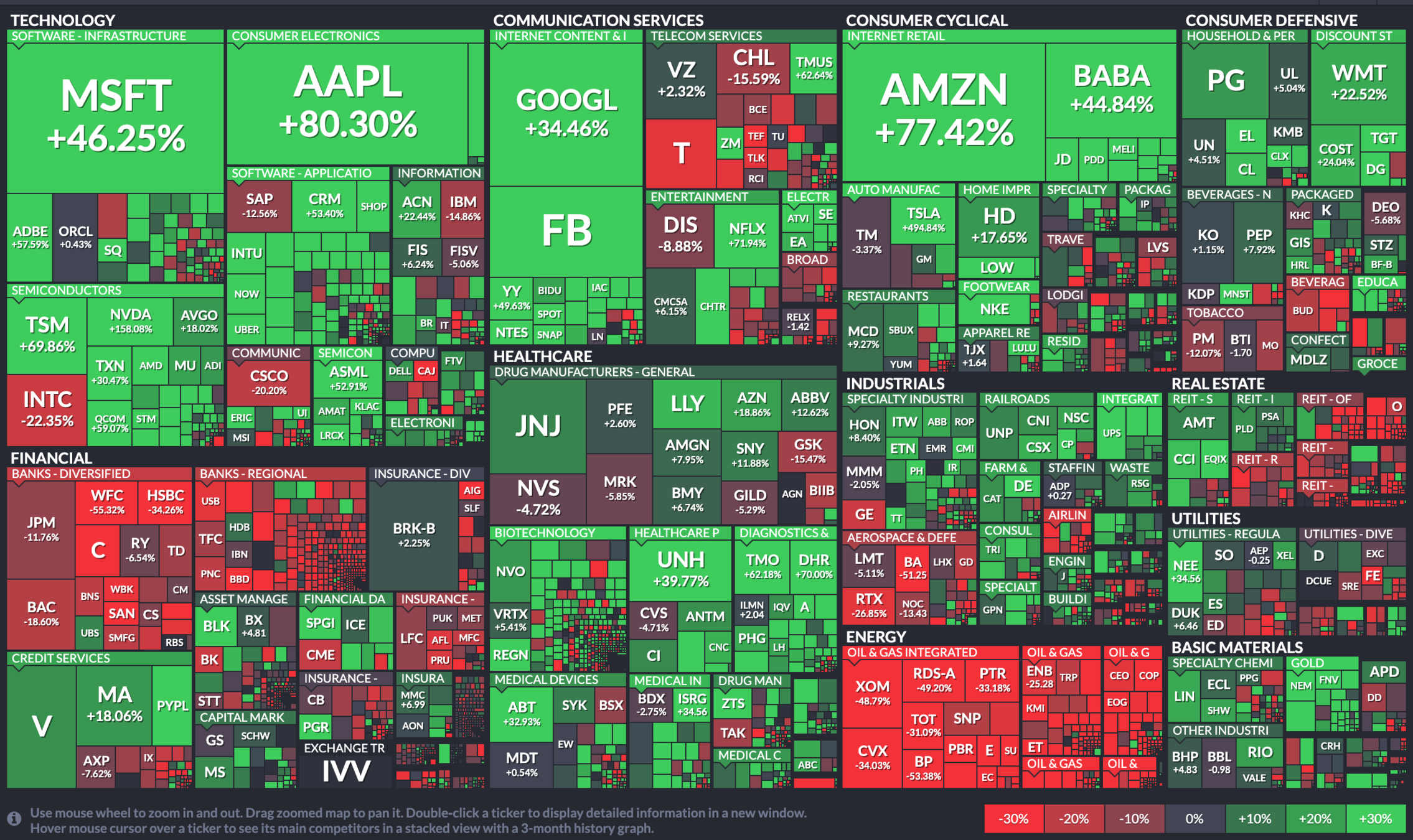 - 최근 1년의 미국 주식을 보면 주로 IT 회사들의 주식이 많이 올라간 것을 확인할 수 있습니다. 개발자로 일을 하면 같은 산업분야 이기 때문에 IT 회사들을 보다 더 잘 이해할 수 있어서 주식할 때 도움이 됩니다.