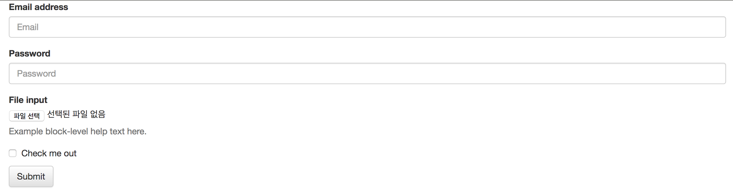 bootstrap 에서 basic form 을 복붙하면 이런 화면이 생성이 됨.