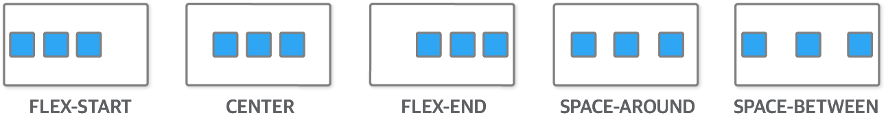 첫번째와 마지막 flex item은 교차축의 시작과 끝 부분에 정렬되고, 나머지는 일정한 간격으로 정렬한다.