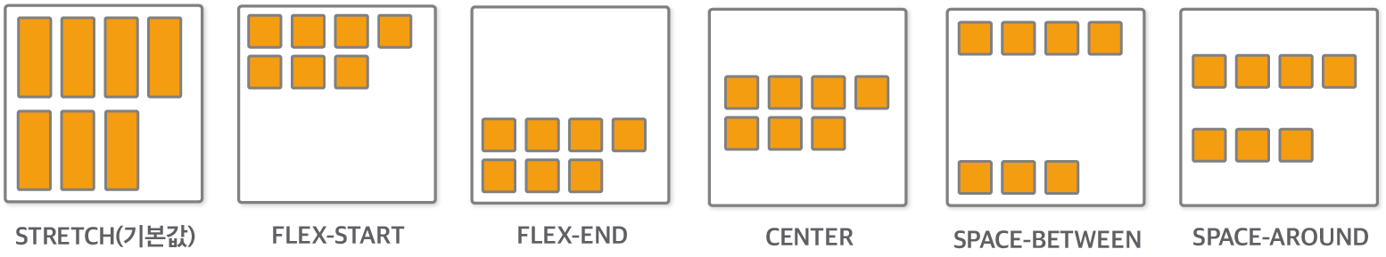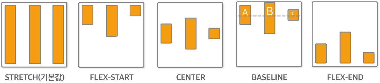 모든 flex-item들은 교차축을 기준으로 일정한 간격으로 정렬한다.