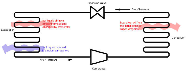- Due to compression process, heat is generated and it must be removed in the condenser.