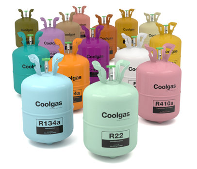 - A chemical used in a cooling mechanism as the heat carrier which undergoes a phase change from gas to liquid and back to gas.