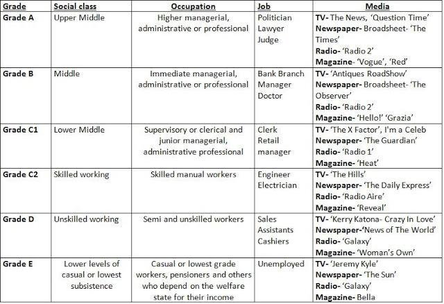 This table shows how the advertisers classify the consumers in the market. They would focus a particular category to appeal to. I could use this to classify the target audience of my thriller film opening that I will be making by the end of this project.