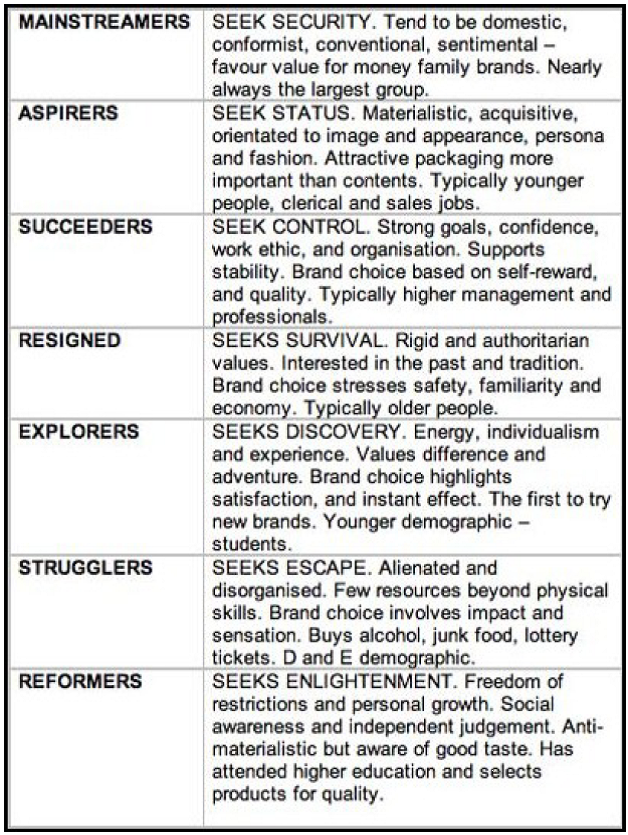 This is the psychographics table that will help