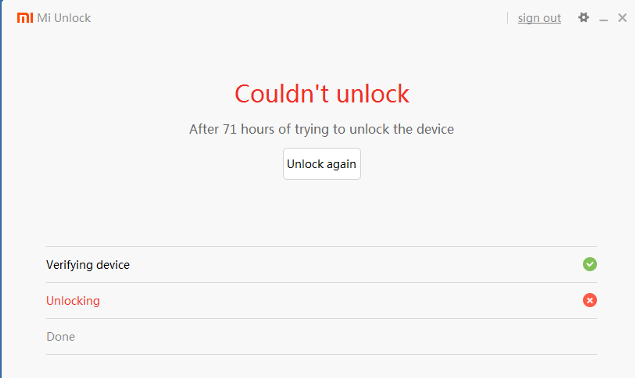 Başvurudan hemen sonra kilit açmayı denediyseniz kilit açılmayacak ama size süre verecektir. Aşağıdaki resimde 71 saat vermiş. Verilen süre kadar bekleyip, kilit açma işlemini tekrar yapmalısınız.