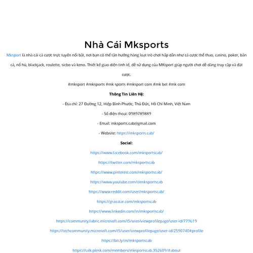 Mksport là nhà cái cá cược trực tuyến nổi bật, nơi bạn có thể tận hưởng hàng loạt trò chơi hấp dẫn như cá cược thể thao, casino, poker, bắn cá, nổ hũ, blackjack, roulette, sicbo và keno. - Website: https://mksports.cab/
