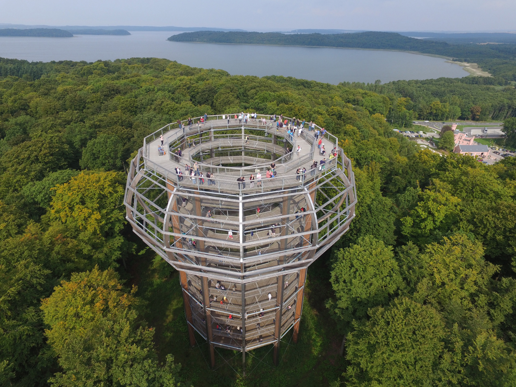 Man kann den Baumwipfelpfad besuchen und Bäume sehen : in 40 Meter Höhe
