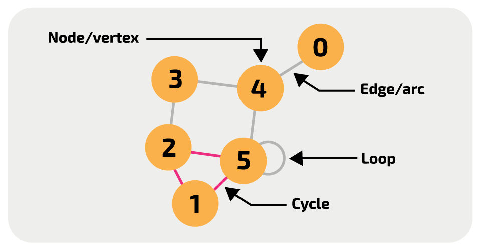 圖用來表示有限集合中物件之間的關係,物件在圖中以「節點/頂點(node / vertex)」呈現、關係以「邊(edge / arc)」呈現。