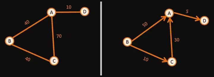 有權圖 (weighted graph):邊上有附於值 (可以想像成公車票價)