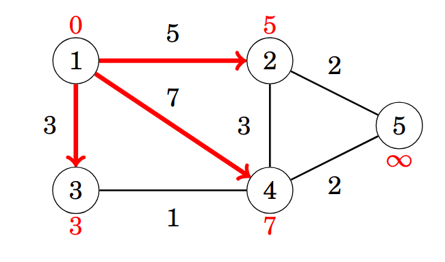 我們每次找到目前所有MST的點,往外連的邊(連到非MST)中
