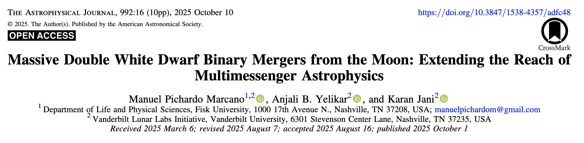Massive Double White Dwarf Binary Mergers from the Moon Recent Papers