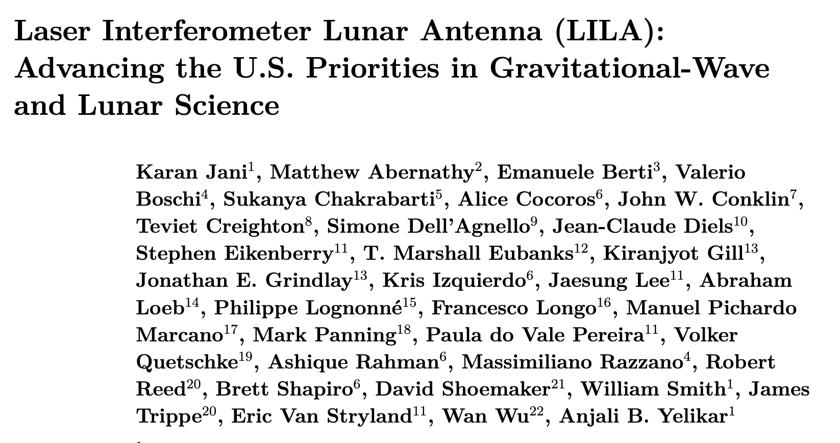 - Laser Interferometer Lunar Antenna (LILA) (Jani et al. 2025):