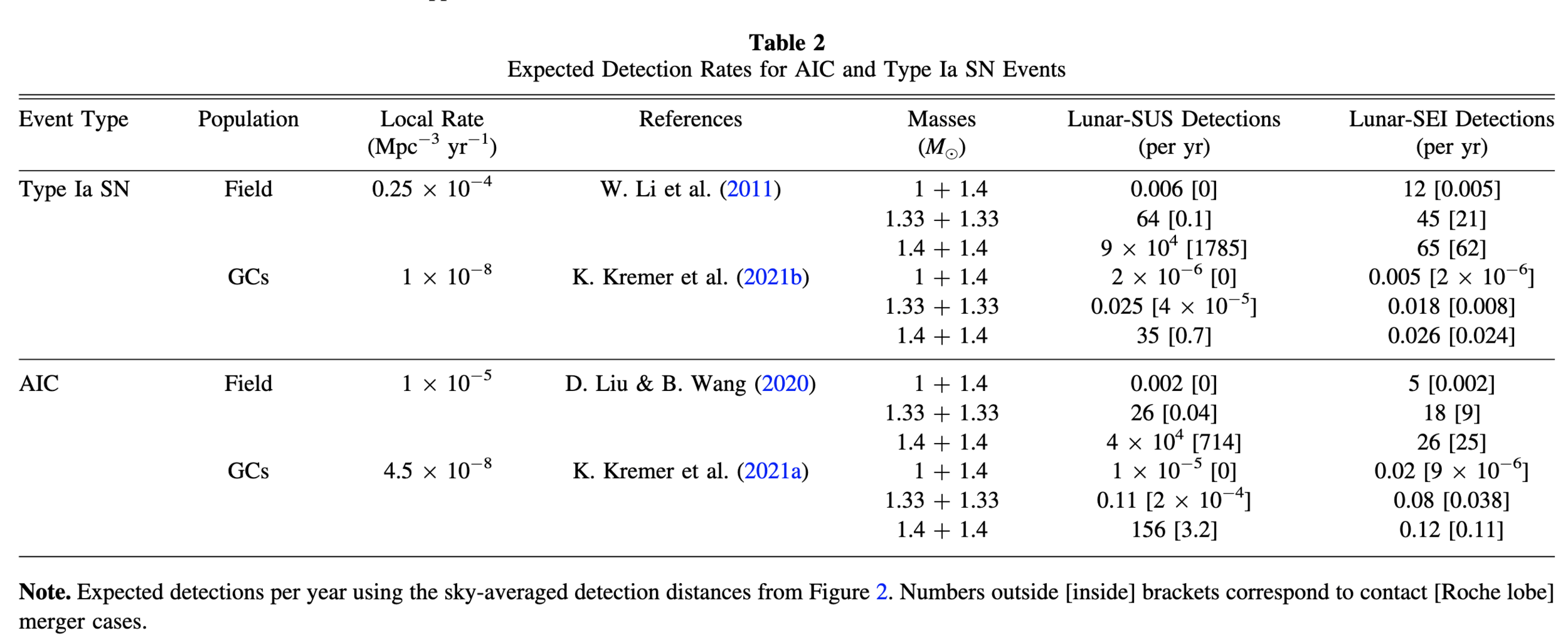 - Massive pairs (ONe+ONe): 1 yr−1 for ∼100 Mpc