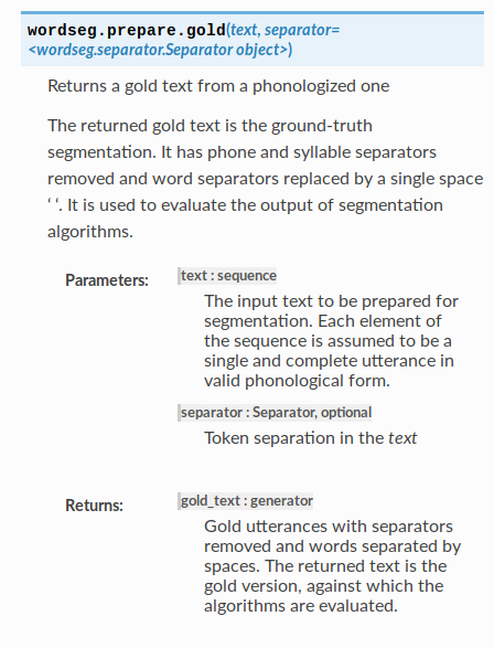 segmented_text = segment(input_text, **args)cat input_text | wordseg-XXX [--args] > segmented_textCoding standards