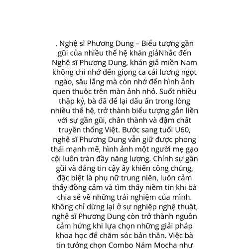 Website: https://mochavietnam.com/nghe-si-phuong-dung-chinh-thuc-dong-hanh-cung-mocha/. . Nghệ sĩ Phương Dung – Biểu tượng gần gũi của nhiều thế hệ khán giảNhắc đến Nghệ sĩ Phương Dung, khán giả miền Nam không chỉ nhớ đến giọng ca cải lương ngọt ngào