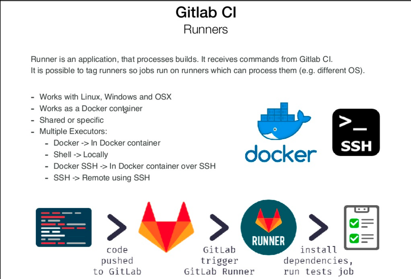 also, there are the different executors in Gitlab Specific Runner?