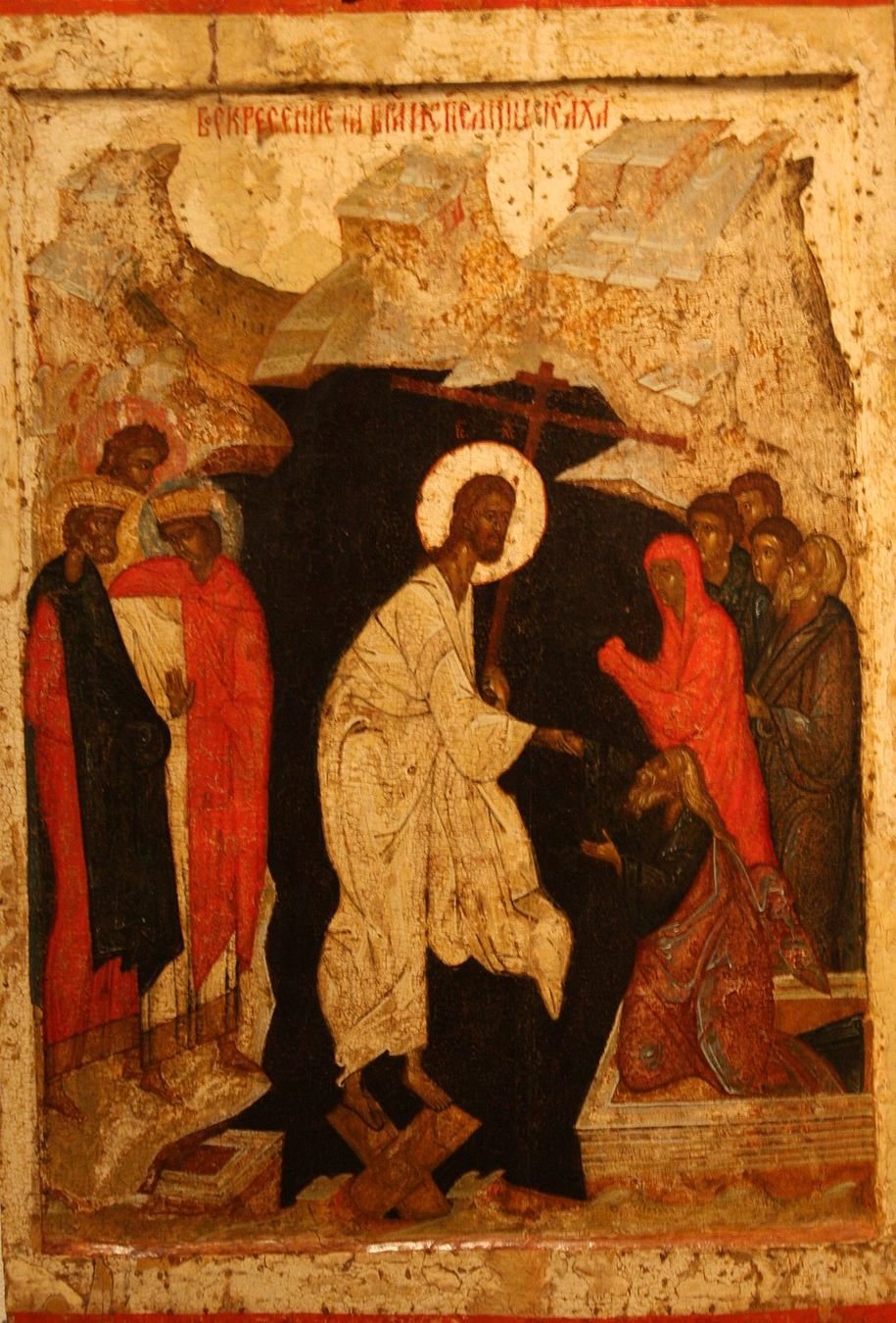 Colui che "spezza" il pianto è il Cristo che è esterno alla roccia, la lambisce e la domina fisicamente la scena anche nelle proporzioni della sua figura più imponente delle altre.