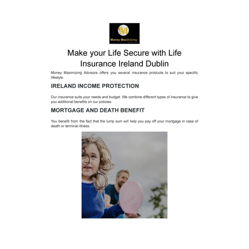 Money Maximizing Advisors offers lifelong Insurance and term Life Insurance Ireland Dublin, Ireland, to cover your entire life or a period of life when you need insurance the most. For more visit us at: https://mmadvisors.ie/make-your-life-secure-with-life-insurance-ireland-dublin/