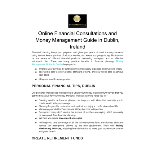 Online Financial Consultations and Money Management Guide in Dublin, Ireland