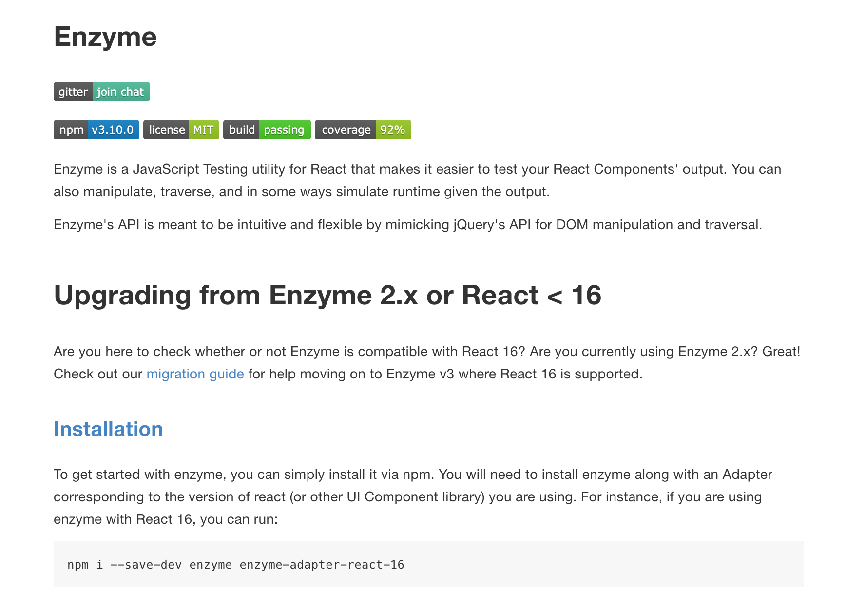 Full DOM rendering is ideal for use cases where you have components that may interact with DOM APIs, or may require the full lifecycle in order to fully test the component (i.e., componentDidMount etc.)