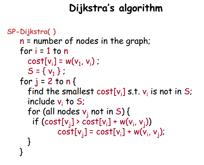 En un momento dado, un mensaje puede tardar cierta cantidad de tiempo en atravesar cada línea. (Por ejemplo, por efectos de congestión). El objetivo del algoritmo es encontrar un camino entre estos dos nodos cuyo coste total sea el mínimo. Los pesos de las aristas serían los costes.