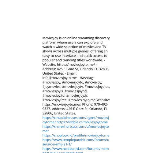 Website: https://moviesjoyto.me/https://moviesjoyto.me/ MoviesJoy is an online streaming discovery platform where users can explore and watch a wide selection of movies and TV shows across multiple genres, offering an easy-to-use interface and quick access to popular and