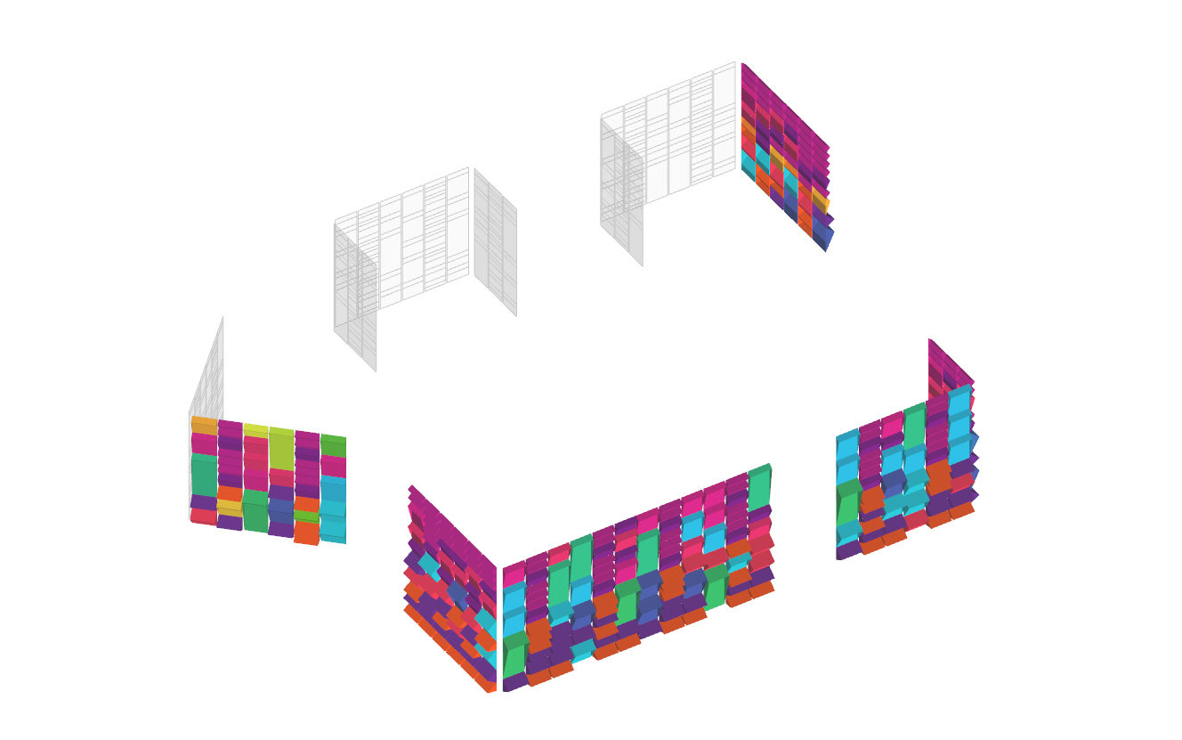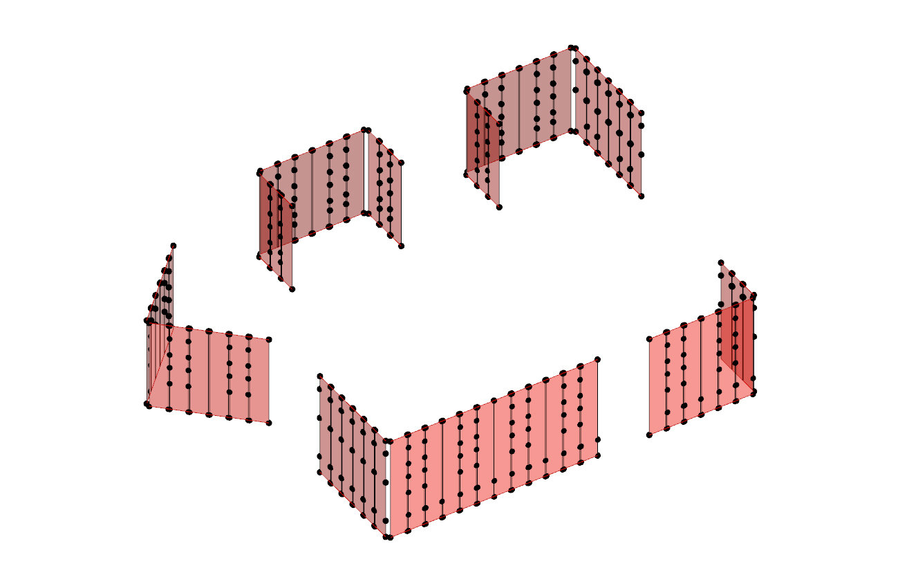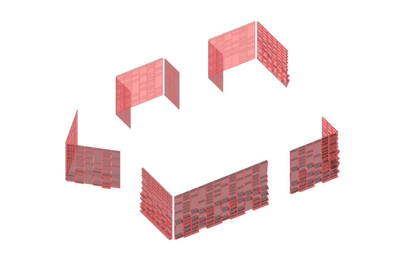 Current methodology for generating a facade grid to hit specific, non-repetitive datum points (these datum points are defined by integrated joinery on the interior of the facade).