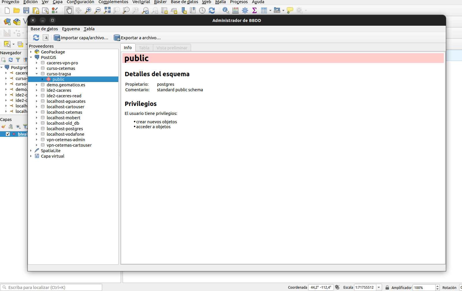 Formación PostGIS para gestión medioambiental