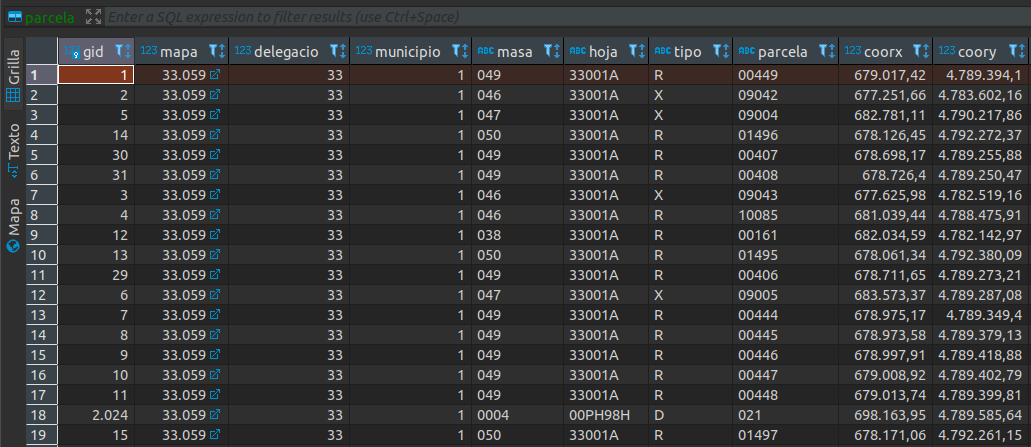 - Filtrar sólo las parcelas de rústica en la capa de QGIS de recintos.