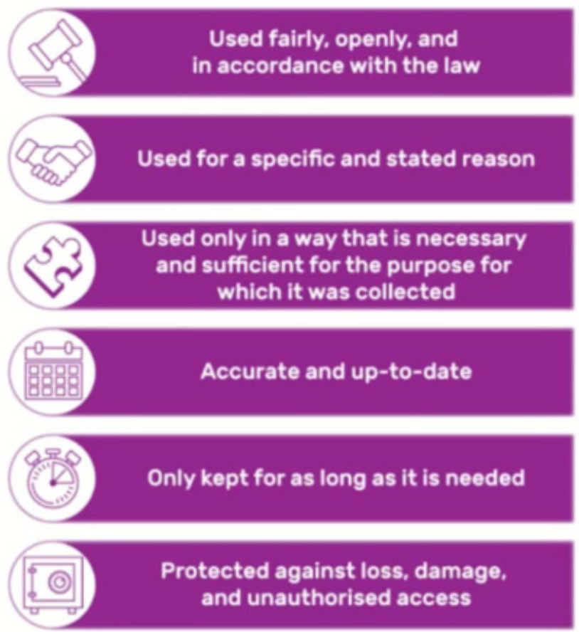 All organisations and people using and storing personal data must abide by the following principles.