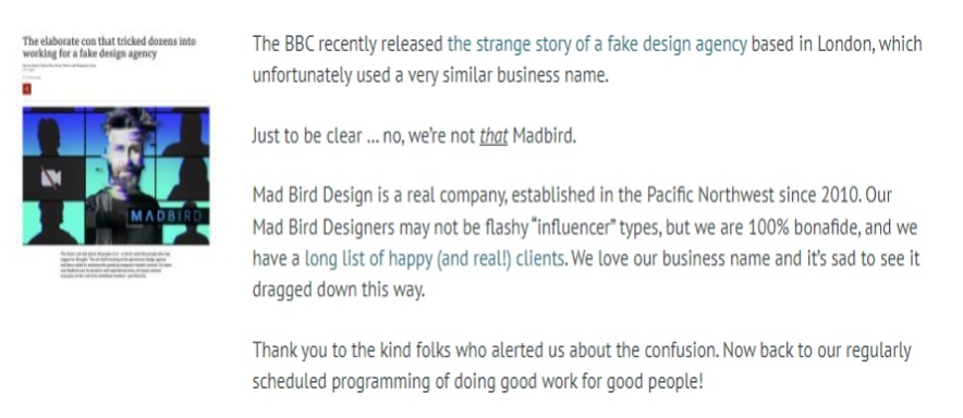 What does the client want from you when posting about their business?