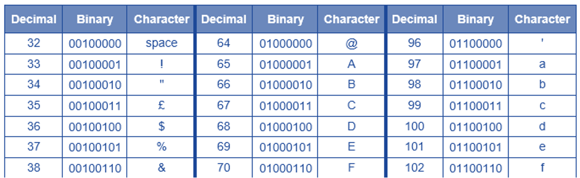 Have a go at the ASCII/Unicode worksheet on Moodle